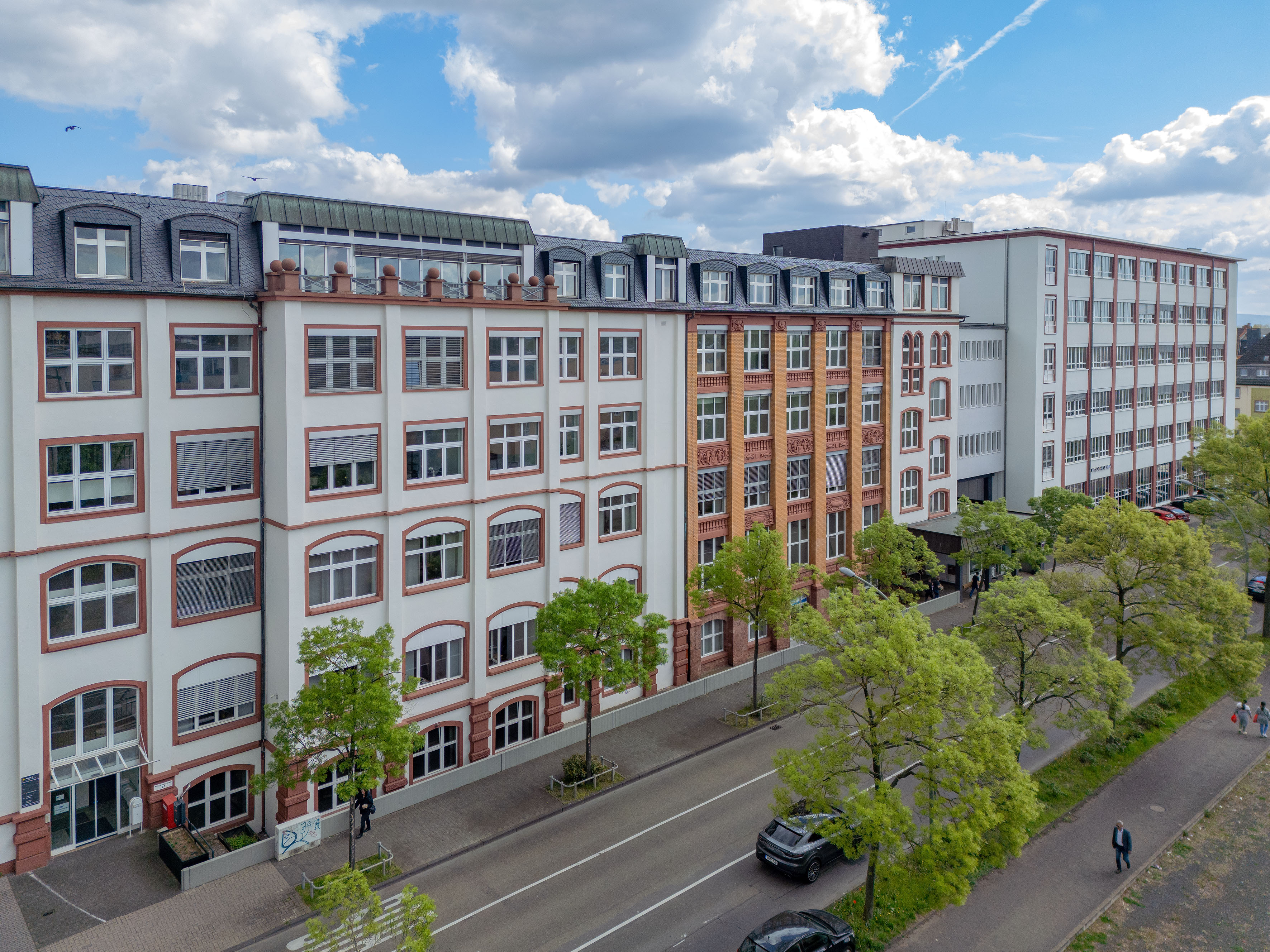 Im Laufe dieses Prozesses wurde die ursprüngliche Planung dahingehend optimiert, dass der Anteil an versiegelten Flächen zugunsten einer stärkeren Durchgrünung des Quartiers minimiert werden konnte. Ein gemeinsamer Eingang erschließt beide Gebäude, die Begrünung der Fassaden trägt zur Verbesserung der Luftqualität und einer natürlichen Verschattung bei.